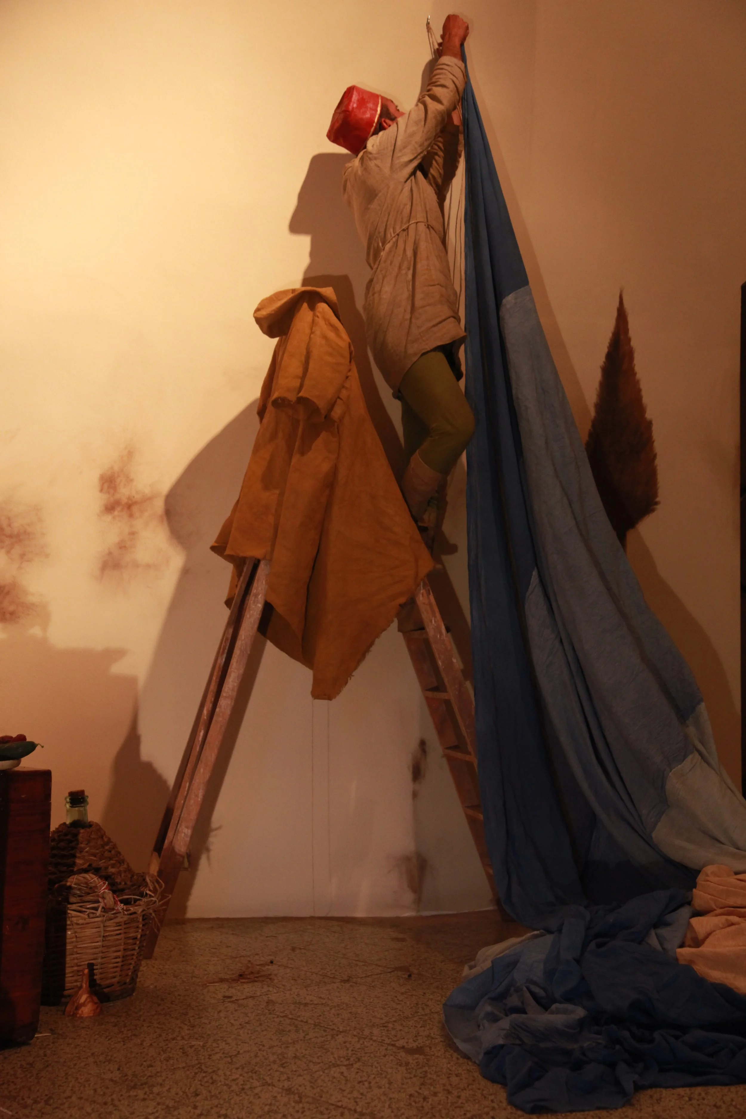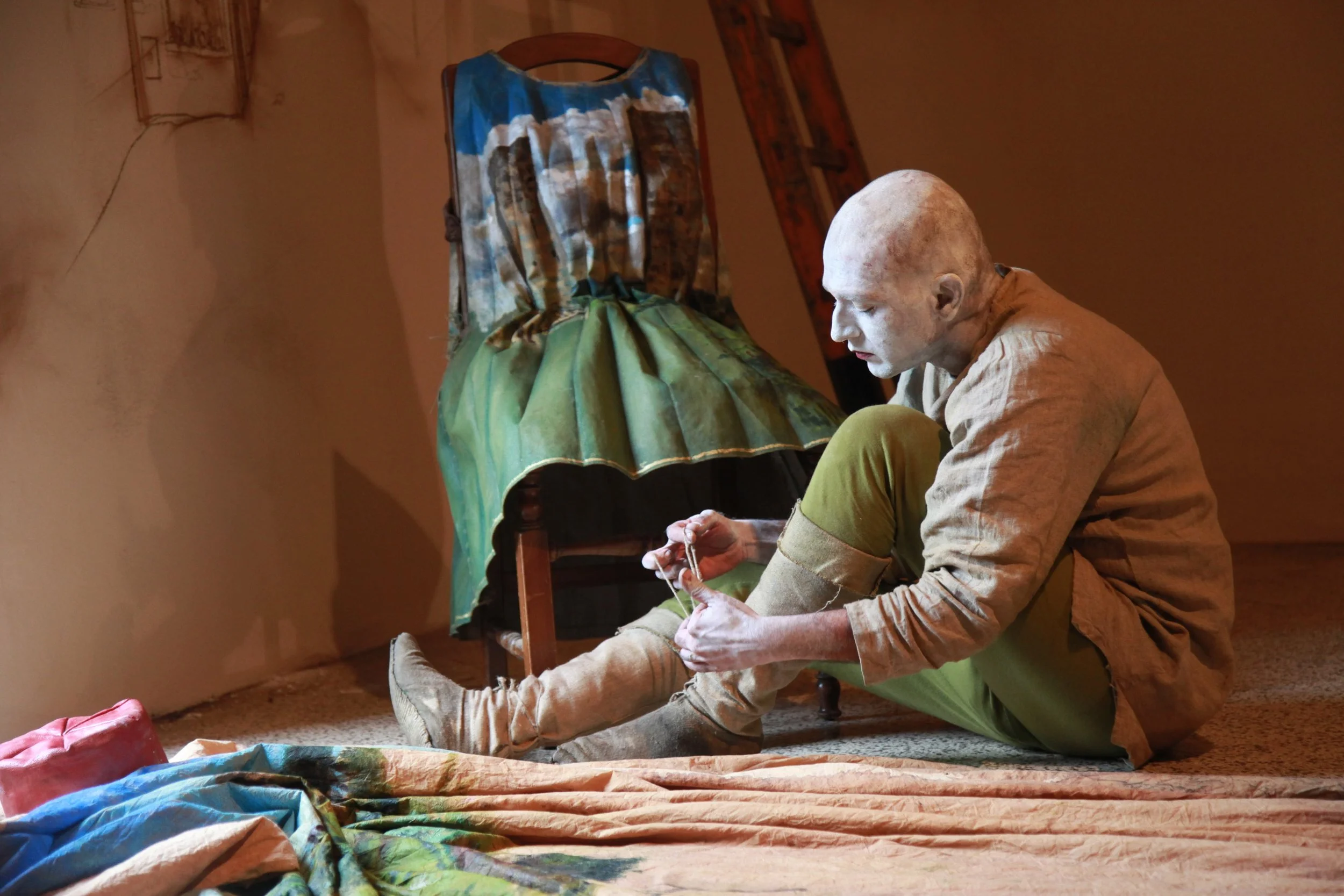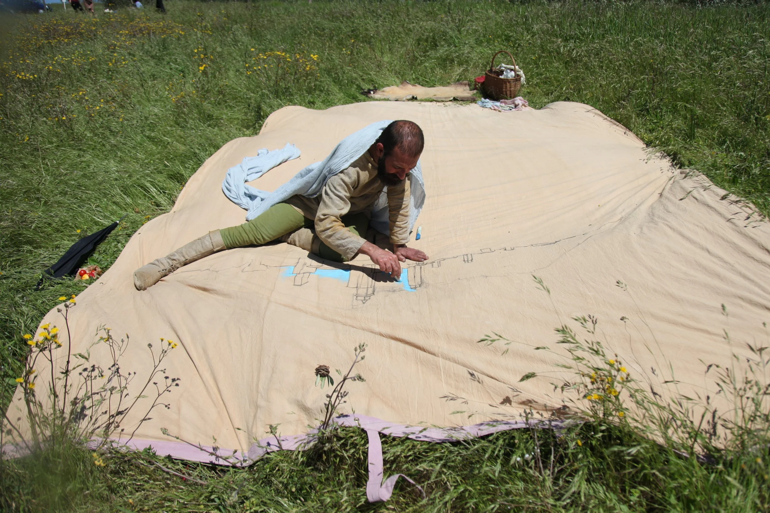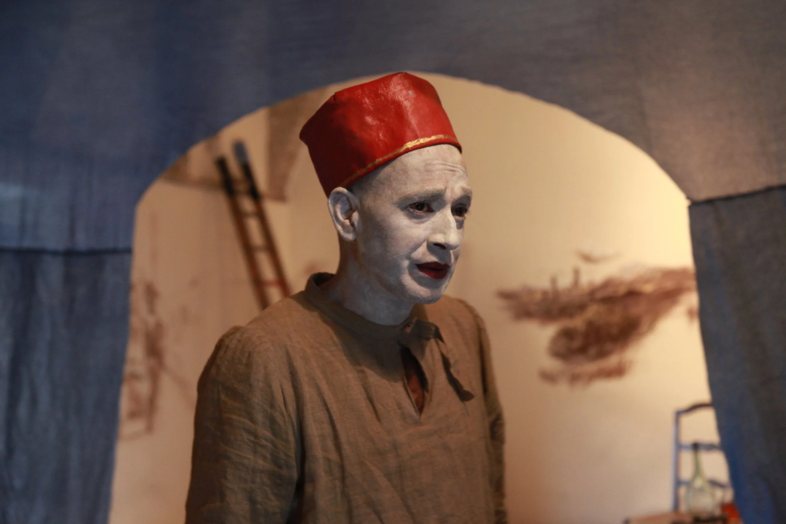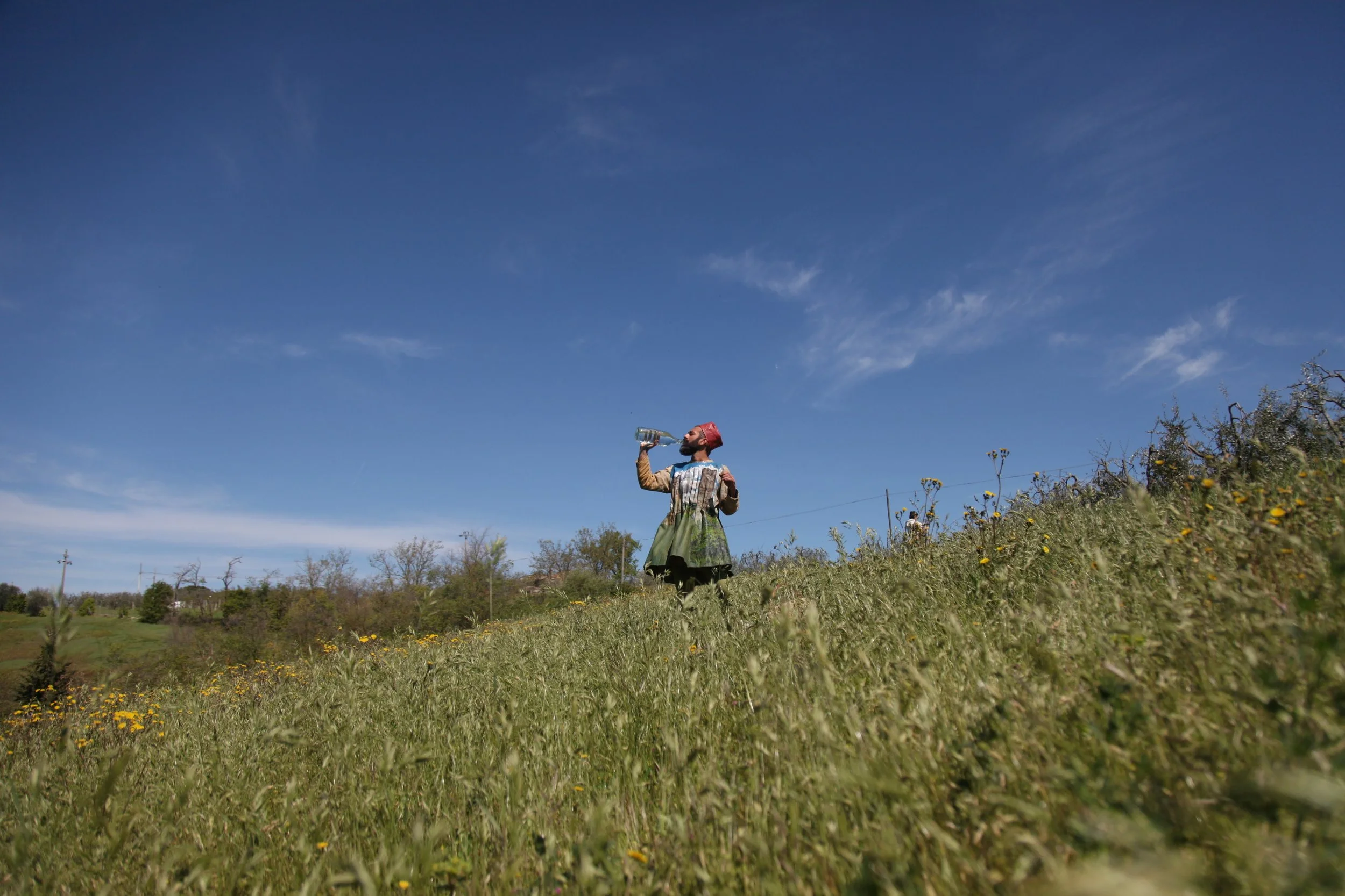 the Church of Sant'Agostino in San Gimignano. Inspired by Gozzoli and his frescos inside out is a site-specific performance conceived by Chopra for the Galleria Continua in San Gimignano. The performance, the longest realized to date by the artist, will last for 99 hours, beginning at 11 am on Wednesday 25 April and ending at 2 pm on Sunday 29 April. During this period of time, the artist will assume the guise of different personae to embody history and memory, and will walk around in the streets of the town and in the surrounding area. In the course of the performance, Chopra will produce a series of drawings of San Gimignano and of the Tuscan landscape. The drawings and their installation will be executed both outside and inside the Arco dei Becci exhibition space, which will be the artist’s abode for the duration of the performance. The installation, the result of four days of performance, will remain on public display until 20 August 2012. The costumes for the performance inside out are designed by Sabine Pfisterer.