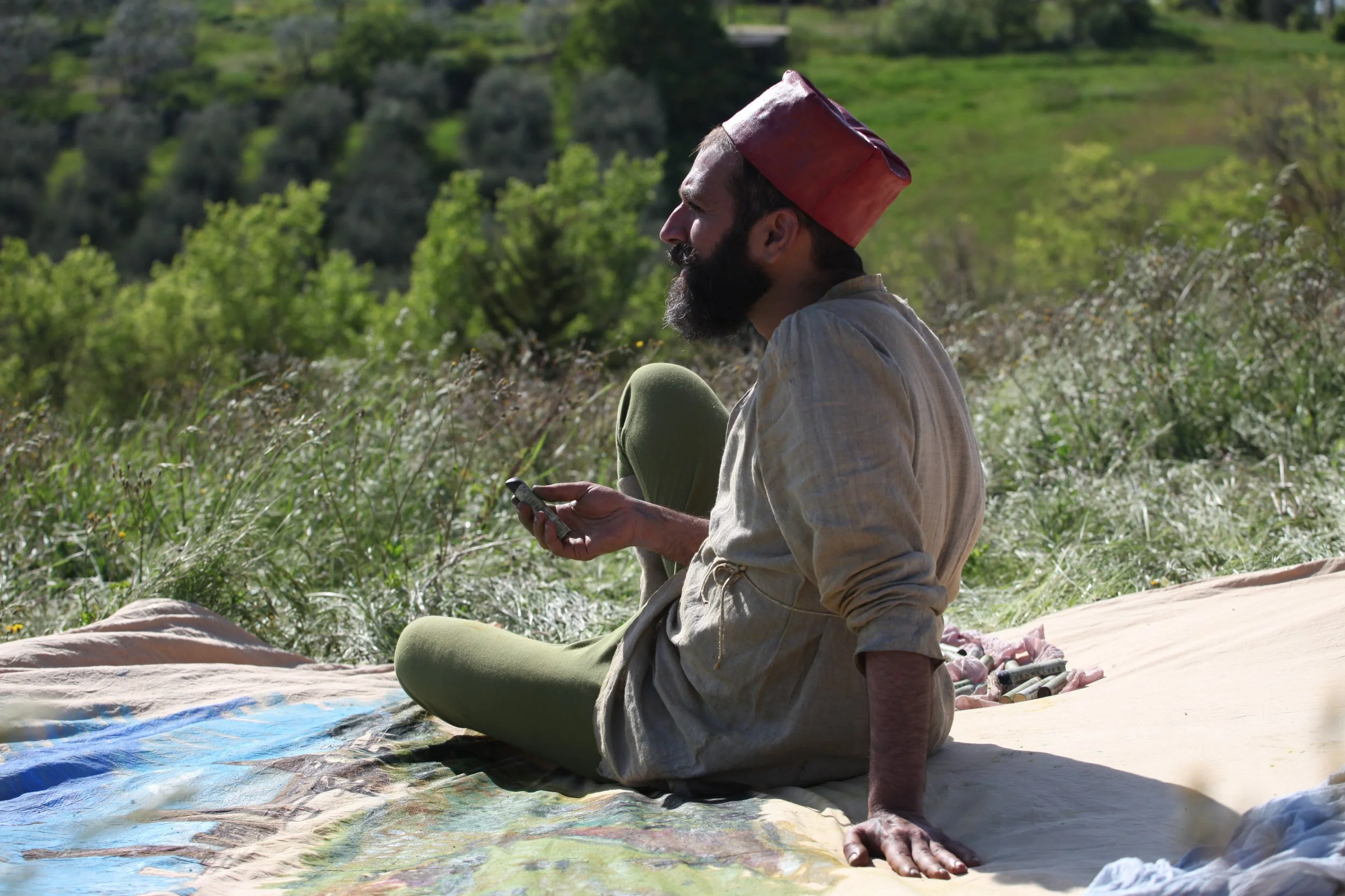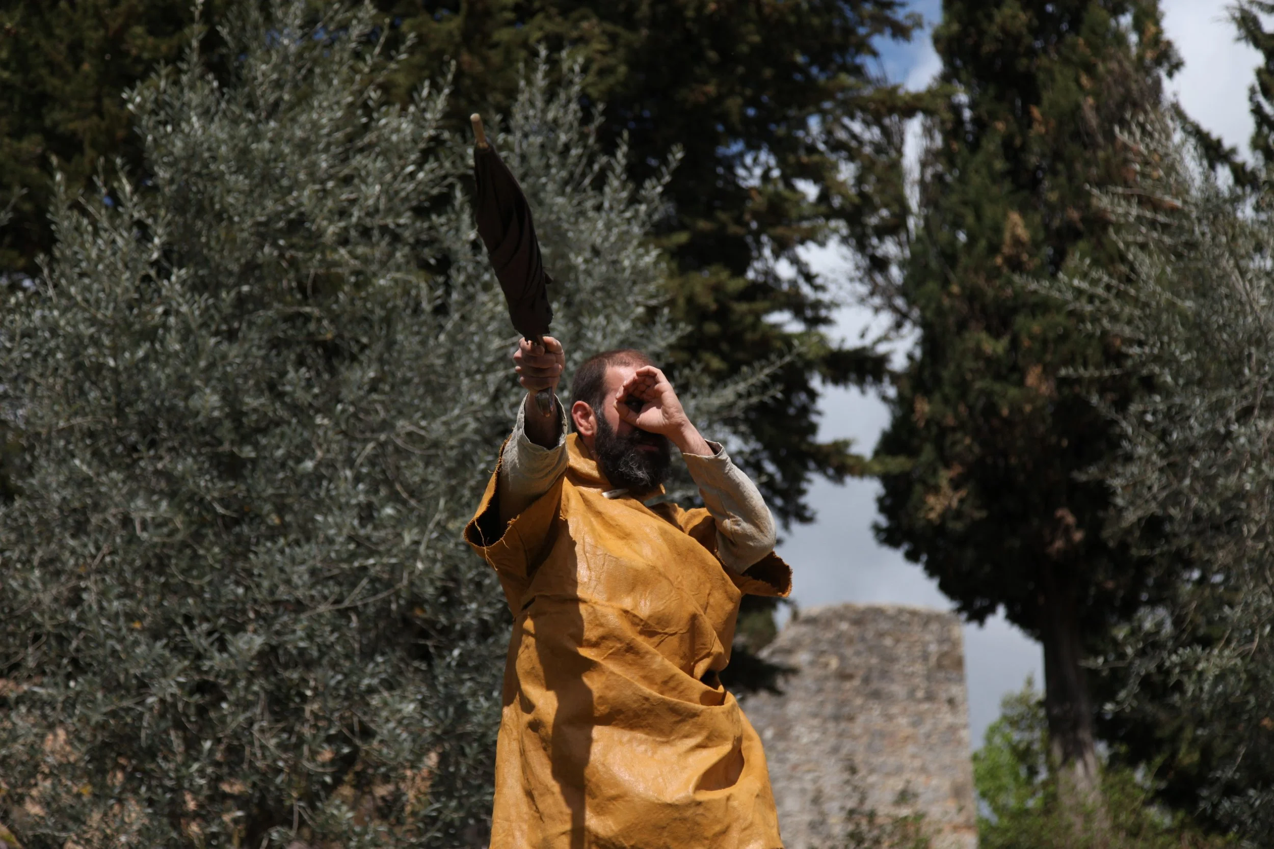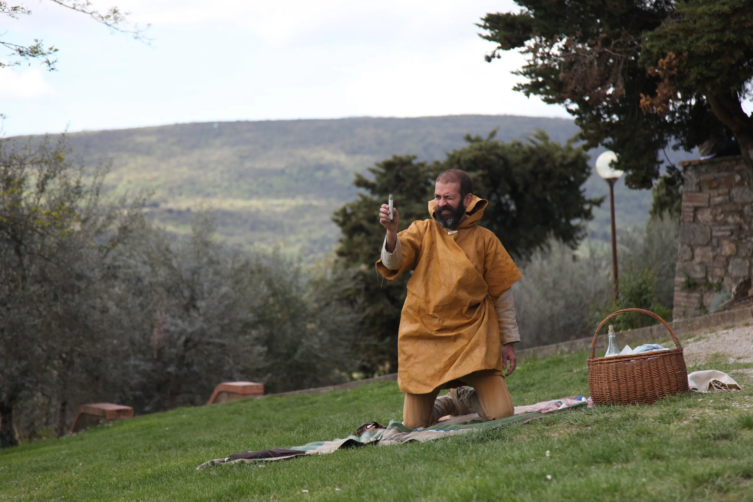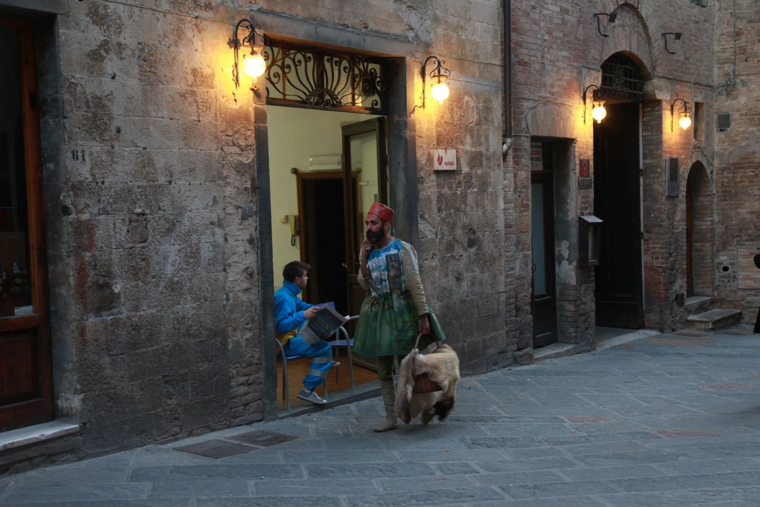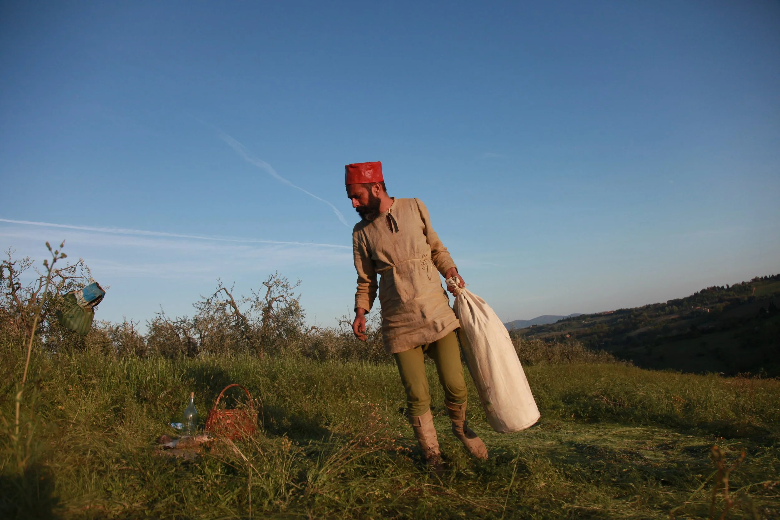 the Church of Sant'Agostino in San Gimignano. Inspired by Gozzoli and his frescos inside out is a site-specific performance conceived by Chopra for the Galleria Continua in San Gimignano. The performance, the longest realized to date by the artist, will last for 99 hours, beginning at 11 am on Wednesday 25 April and ending at 2 pm on Sunday 29 April. During this period of time, the artist will assume the guise of different personae to embody history and memory, and will walk around in the streets of the town and in the surrounding area. In the course of the performance, Chopra will produce a series of drawings of San Gimignano and of the Tuscan landscape. The drawings and their installation will be executed both outside and inside the Arco dei Becci exhibition space, which will be the artist’s abode for the duration of the performance. The installation, the result of four days of performance, will remain on public display until 20 August 2012. The costumes for the performance inside out are designed by Sabine Pfisterer.