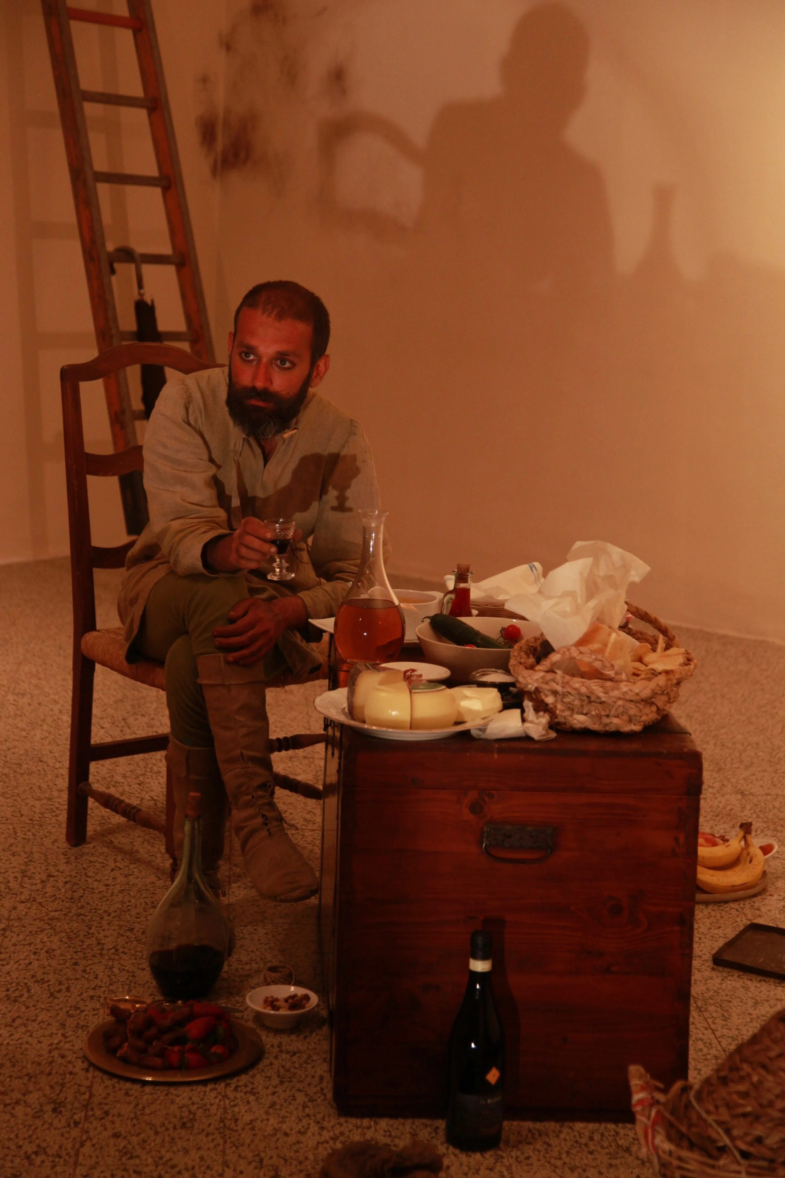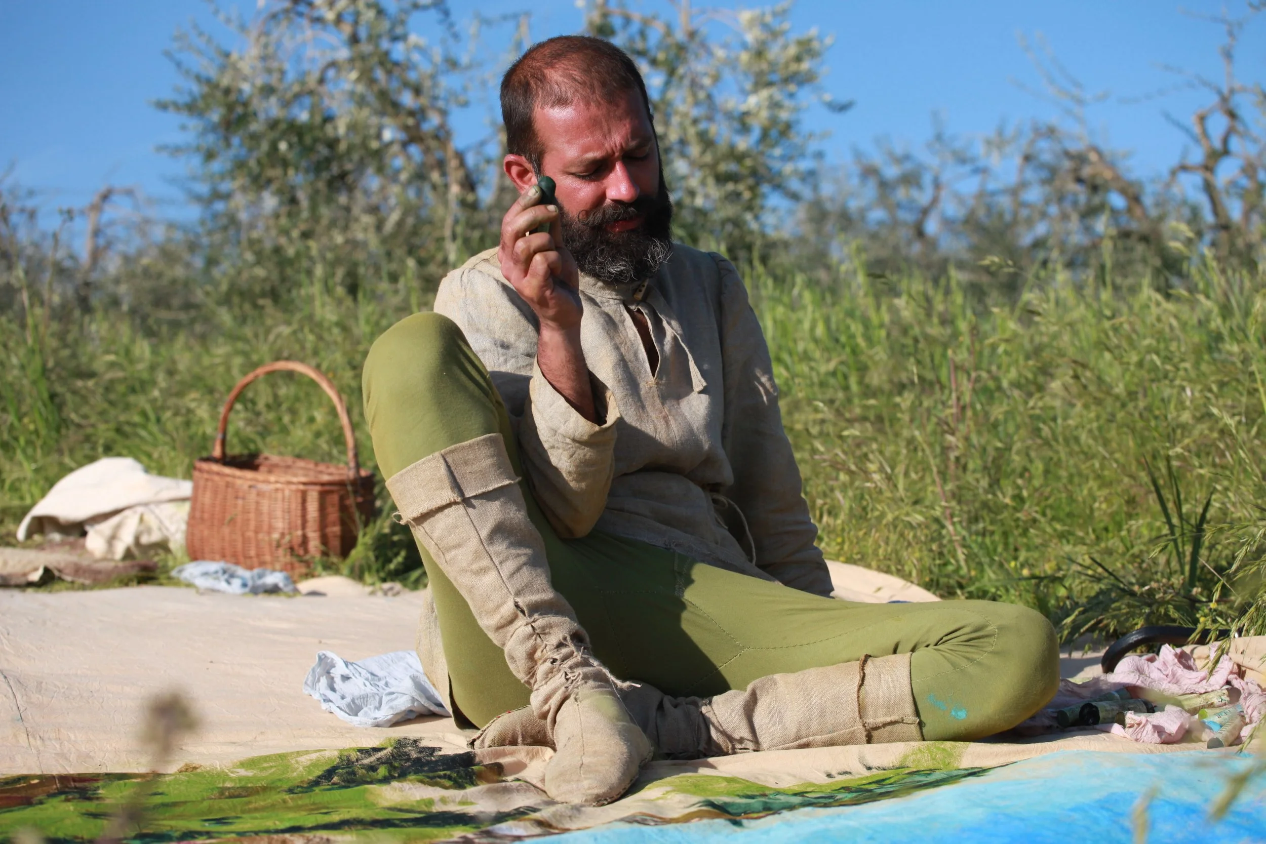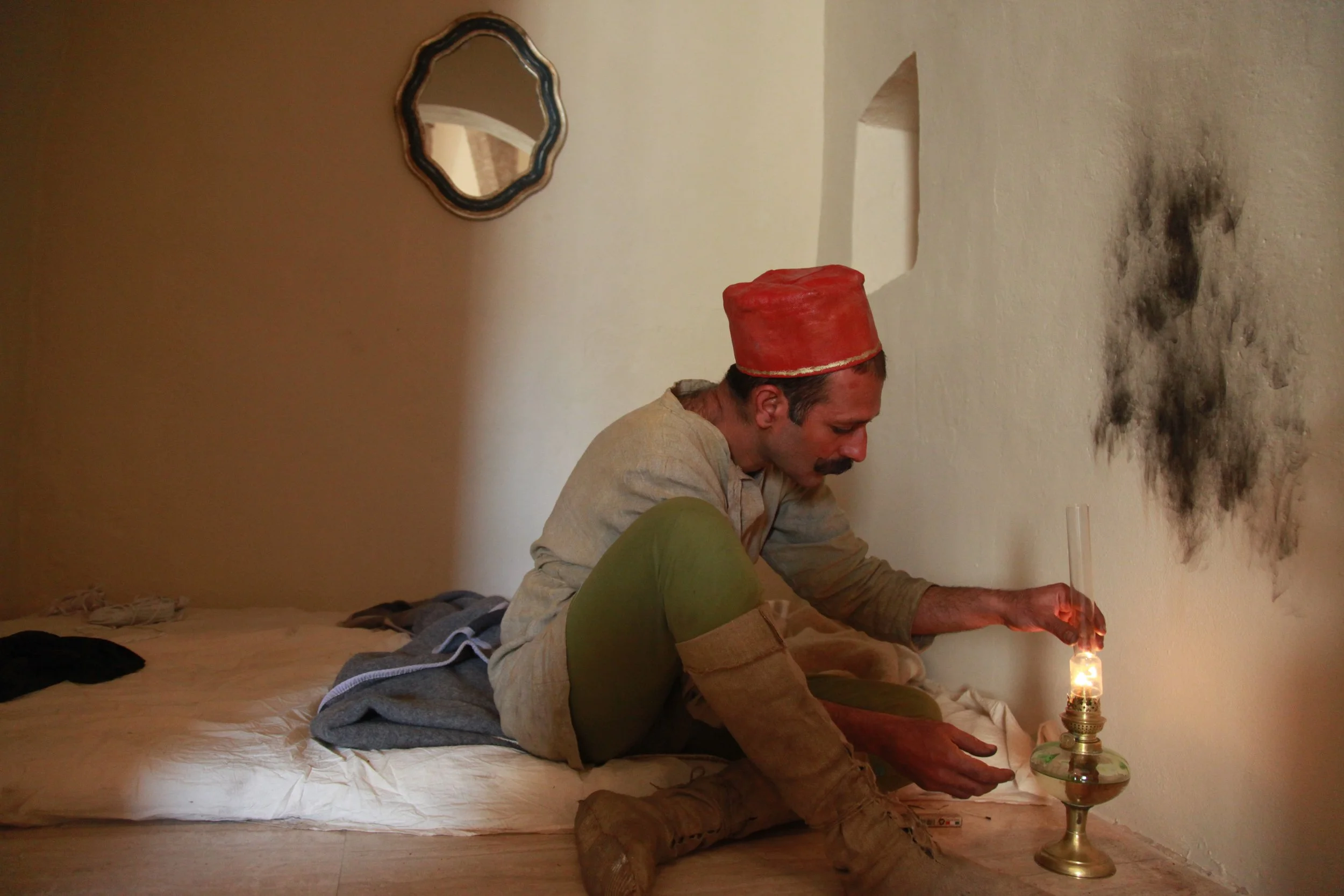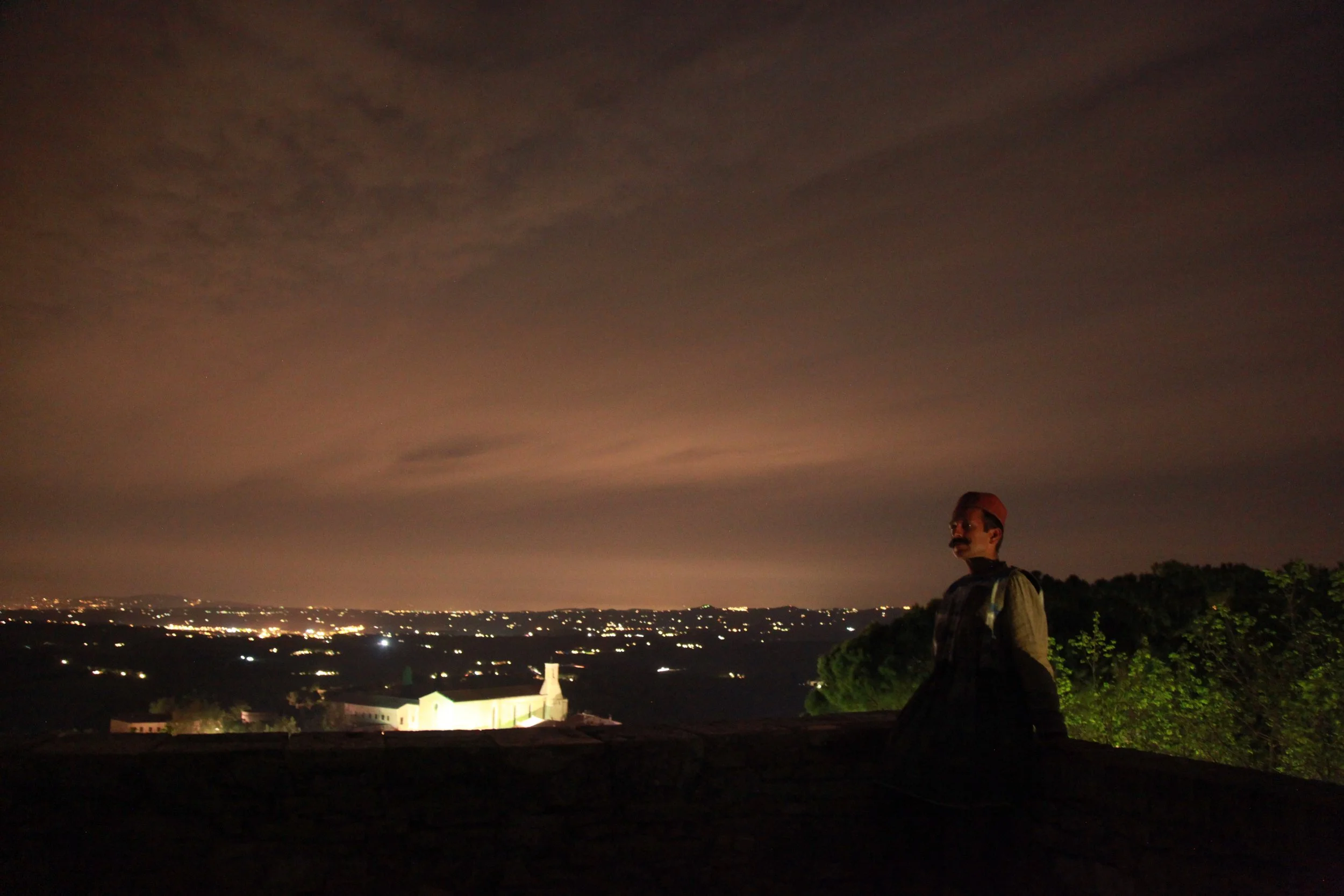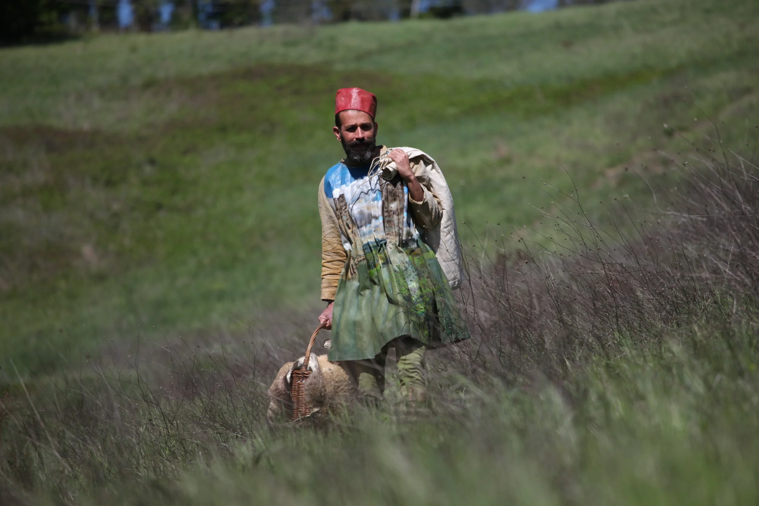 the Church of Sant'Agostino in San Gimignano. Inspired by Gozzoli and his frescos inside out is a site-specific performance conceived by Chopra for the Galleria Continua in San Gimignano. The performance, the longest realized to date by the artist, will last for 99 hours, beginning at 11 am on Wednesday 25 April and ending at 2 pm on Sunday 29 April. During this period of time, the artist will assume the guise of different personae to embody history and memory, and will walk around in the streets of the town and in the surrounding area. In the course of the performance, Chopra will produce a series of drawings of San Gimignano and of the Tuscan landscape. The drawings and their installation will be executed both outside and inside the Arco dei Becci exhibition space, which will be the artist’s abode for the duration of the performance. The installation, the result of four days of performance, will remain on public display until 20 August 2012. The costumes for the performance inside out are designed by Sabine Pfisterer.