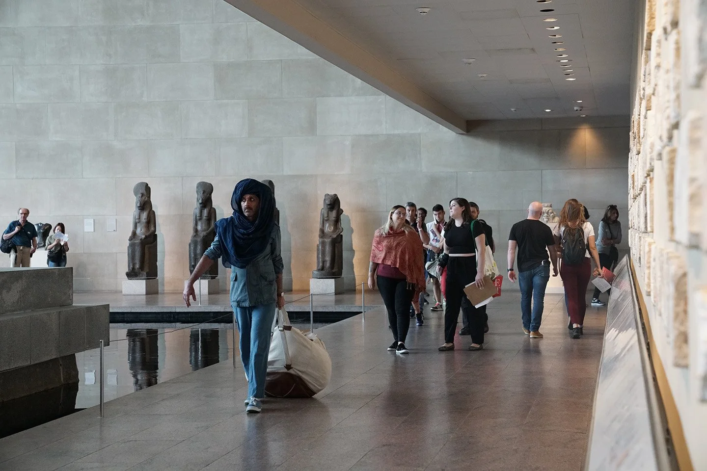 Using the information that he gleaned, Chopra designed a specific itinerary: he will travel from the Egyptian Temple of Dendur to the threshold between the Modern and Contemporary galleries and the space holding The Met’s African, Oceanic and Ancient Americas collections, and then complete his journey in the Lehman Wing.
