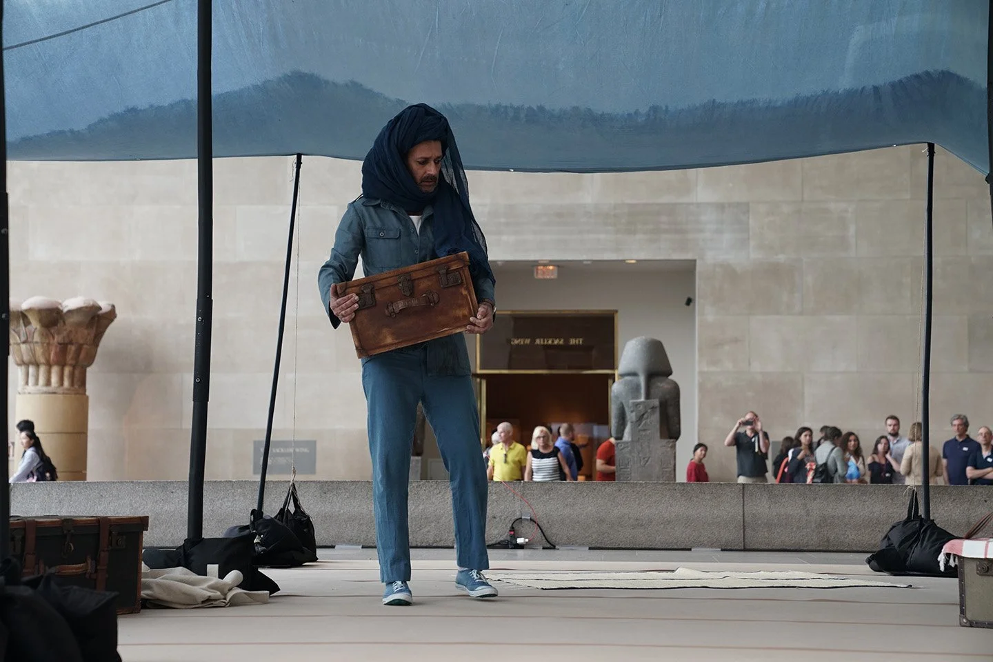 Chopra prepared for this performance over the course of more than a year. During multiple research trips, he spoke with curators, conservators, scientists, collections managers, building and security staff. He immersed himself in the Met’s collection and its physical layout, observing how audiences moved through the galleries.